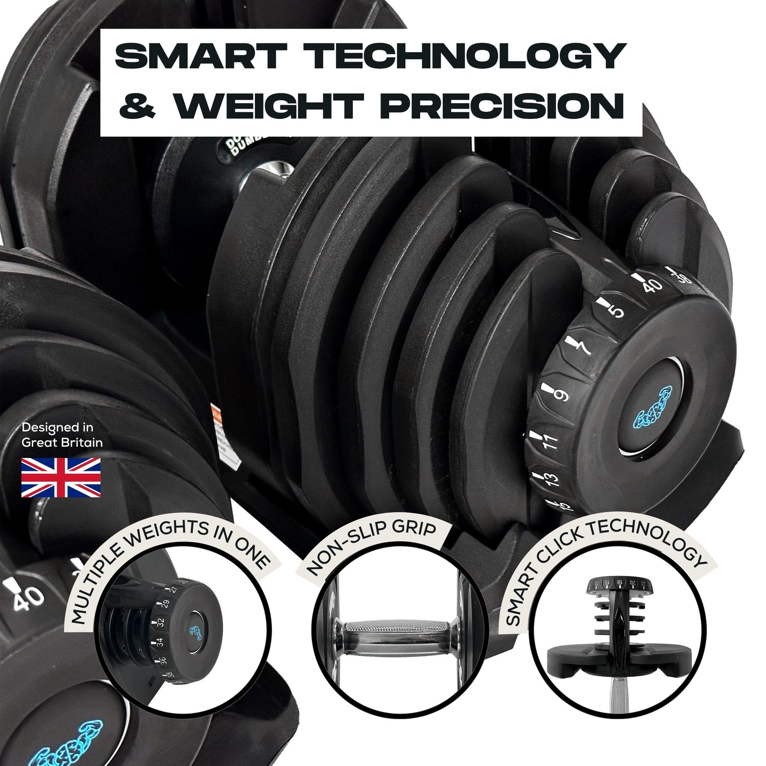 - 17 Gewichte in 1 Hantel lässt Sie mit einer Drehung des Zifferblatts von 5 kg auf 40 kg wechseln